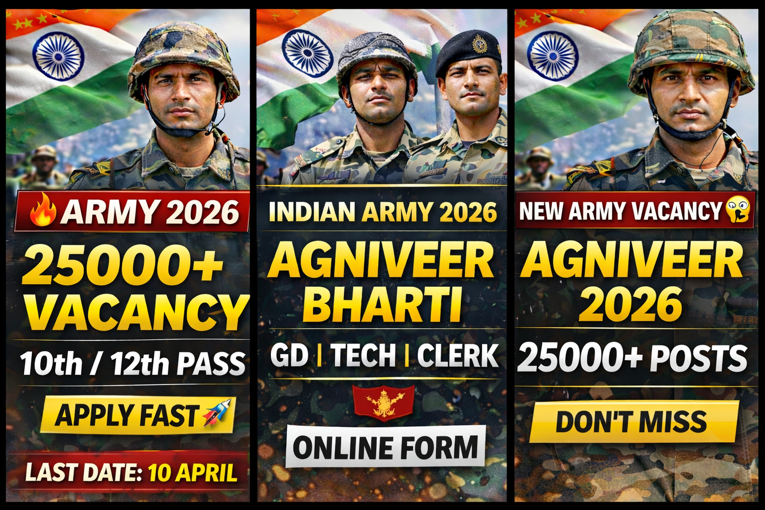 • Agniveer GD / Technical / Tradesman : 8th / 10th / 12th